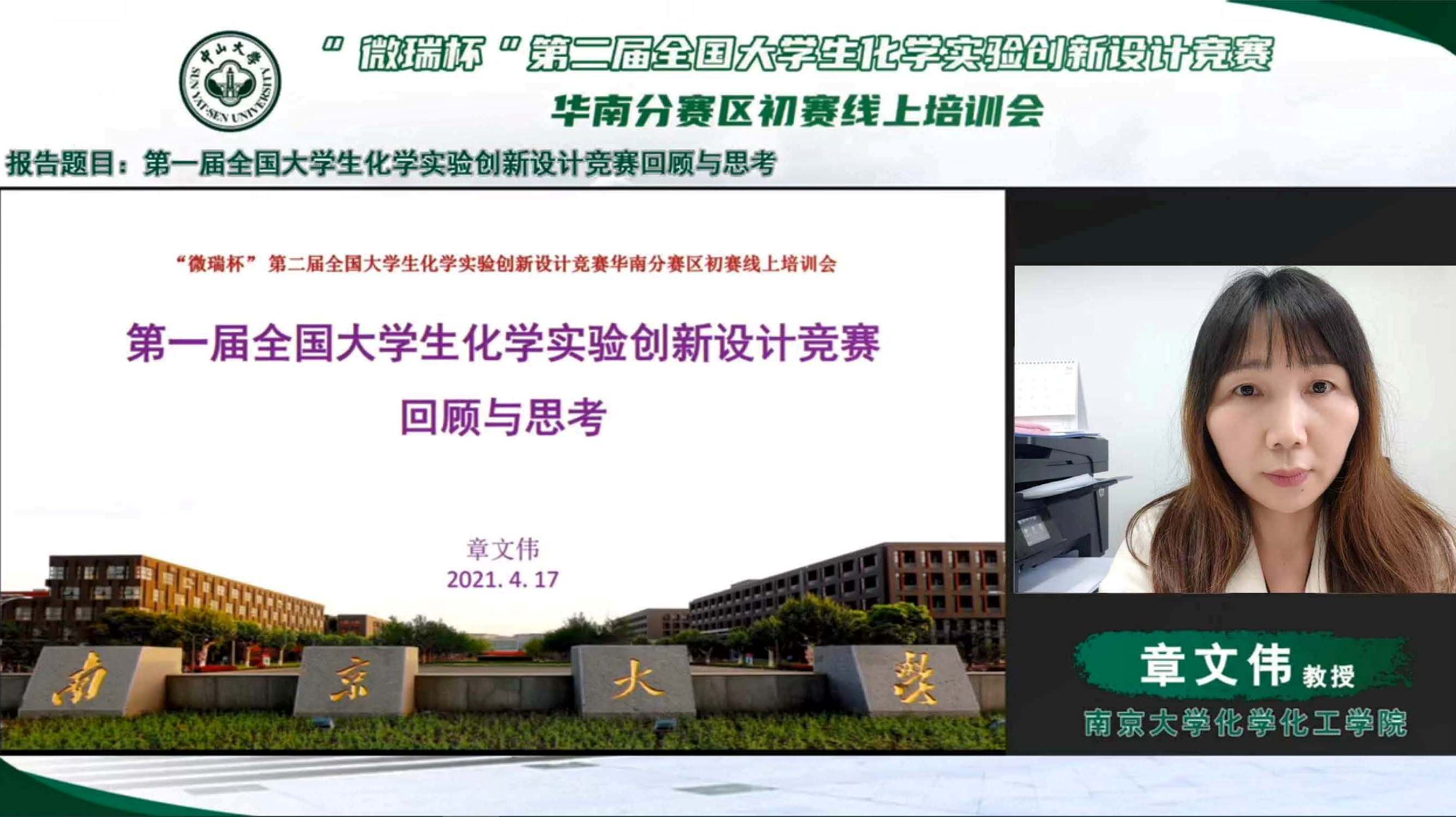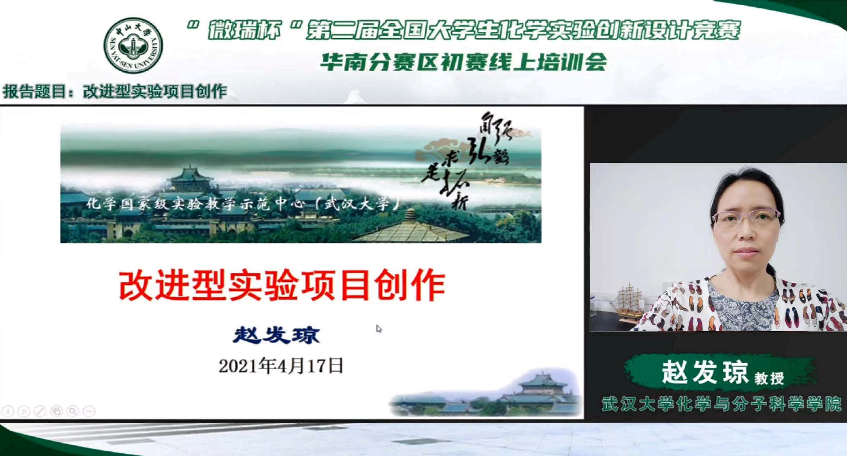 2021年4月17日,3044永利集团成功举办了“微瑞杯”第二届全国大学生化学实验创新设计竞赛华南分赛区初赛线上培训会。全国大学生化学实验创新设计竞赛是由中国化学会、高等学校国家级实验教学示范中心联席会主办的全国性大学生学科竞赛。竞赛每年一届,2019年举办了首届,2020年因疫情停办,2021年为第二届。全国分东北、华北、华东、华中、西北、西南、华南共七个分赛区首先进行初赛,然后再进行全国总决赛。3044永利集团将承办2021年华南分赛区初赛,目前已有来自广东、福建、湖南、广西、海南的63所高校报名参赛,竞赛将于7月23-26日举办。本次线上培训会的目的是帮助各高校提高参赛作品质量,提升赛事水平。会议特邀南京大学章文伟教授、中国科学技术大学朱平平教授、武汉大学赵发琼教授和3044永利集团李厚金副教授分别作了内容详实、生动精彩的大会专题报告。培训活动受到格外重视,吸引了全国各个赛区高校的教师和学生观看会议,线上参会人数多达14000余人,反响远超预期。本次会议由肖华老师主持。