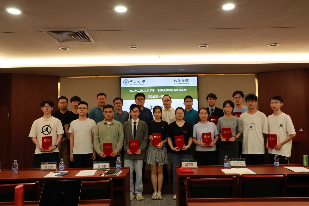经答辩评委综合评分,共评选出第二十二届“创新化学实验与研究”基金项目的获奖名单10项,其中一等奖2项、二等奖3项、三等奖5项(名单见附件1)。评委们一起给各组获奖同学颁发了奖状并合影留念。至此,第二十二届“创新化学实验与研究”基金项目论文答辩会圆满结束, “重在学习,贵在坚持,赢在创新”的大创精神也将在今后各届的“创新化学实验与研究”基金项目中继续传承,发扬光大!