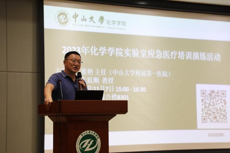 为加强师生应对化学实验教学和科研训练中突发健康意外时自救及他救的能力,保障师生的生命健康,11月7日下午,永利特邀3044永利集团附属第一医院急诊科熊艳主任在东校园化学材料综合楼B301开展“校园常见急救医疗常识”专题培训及医疗急救演练。学院党委冯双书记、各实验室安全员、教职工、研究生与本科生一百余人参加了本次讲座。讲座由学院院长助理朱庭顺老师主持。