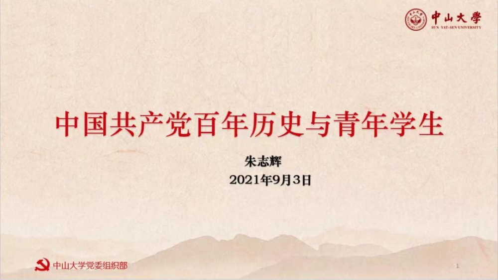 随后,朱志辉老师对研究生新生进行了党史教育。朱老师从《觉醒年代》这部电视剧引入建党历程,回顾了中大师生在中大建校与发展历史中,积极加入到党组织中为中国人民谋幸福、为中华民族谋复兴所付出的努力,希望新中大人承担起新时代赋予青年的历史责任与使命,强调新时代青年要增强做中国人的志气、骨气跟底气。