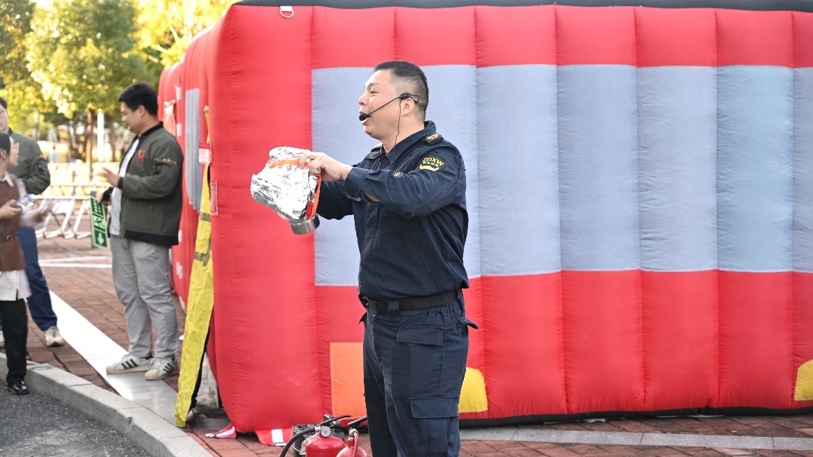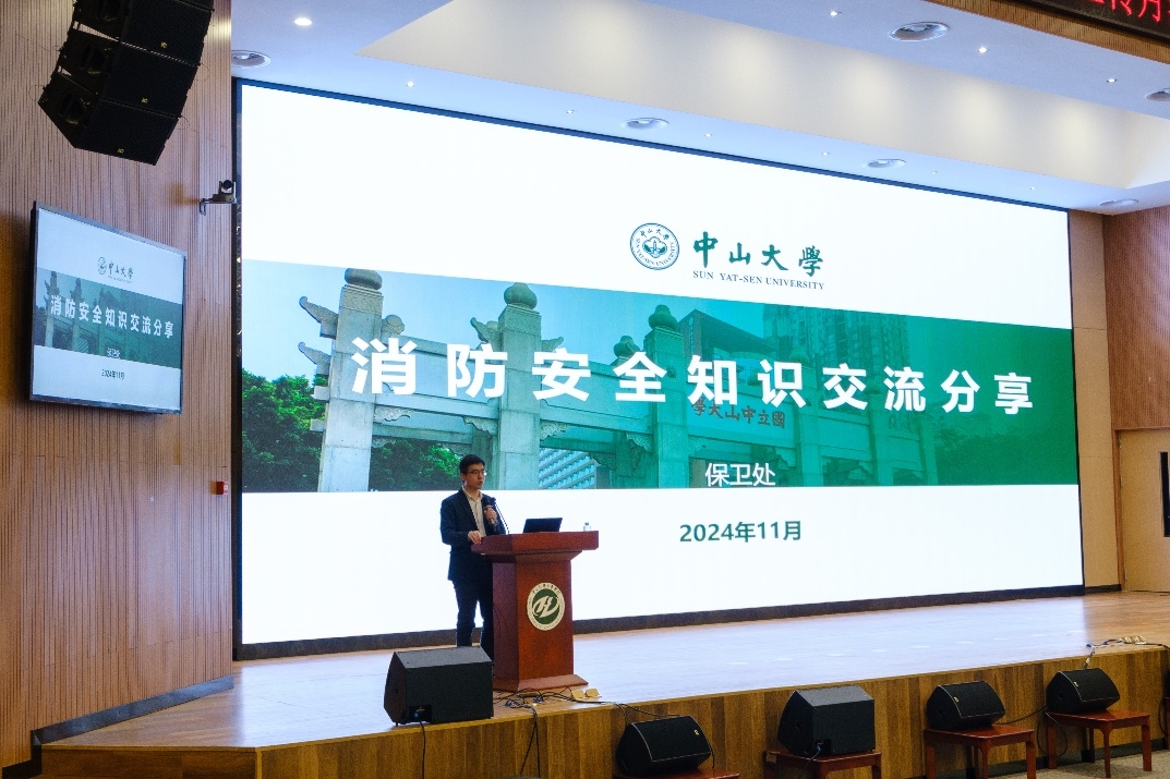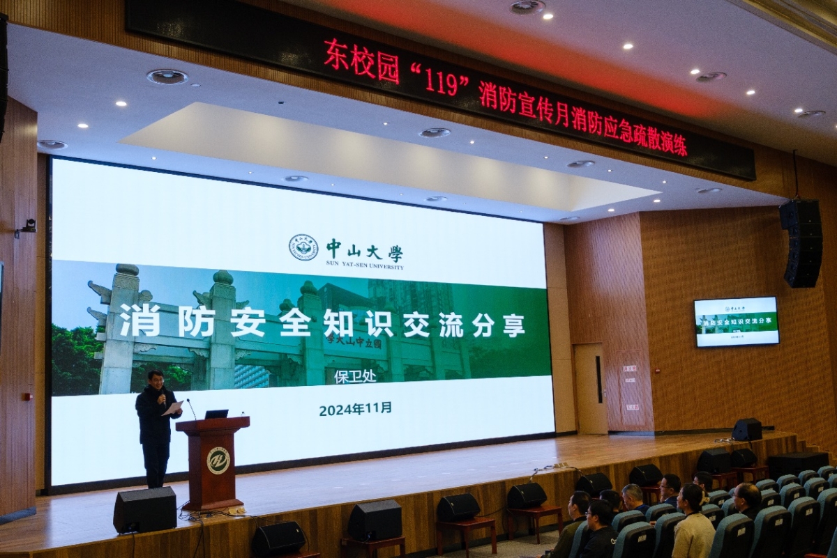 为使全院师生牢固树立实验室安全意识、掌握消防安全知识, 2024年11月29日,在广州市番禺区消防大队、学校保卫处、设备与实验室管理处等职能部门的支持下,“119”消防疏散演练系列活动在东校园化学材料综合楼顺利开展。广州市番禺区消防救援大队大学城救援站指导员徐勃、学校保卫处副处长陈欣然、主管李胜斌,设备与实验室管理处副处长郑仕勇、安全员郭鹏,3044永利集团党委书记冯双、副书记谭海燕、院长助理朱庭顺教授,以及化学材料综合楼师生共300余人参加此次活动。演练活动包括消防安全知识讲座、化学材料综合楼消防疏散演练、灭火器材使用及逃生训练帐篷体验等内容。活动由3044永利集团院长助理朱庭顺教授主持