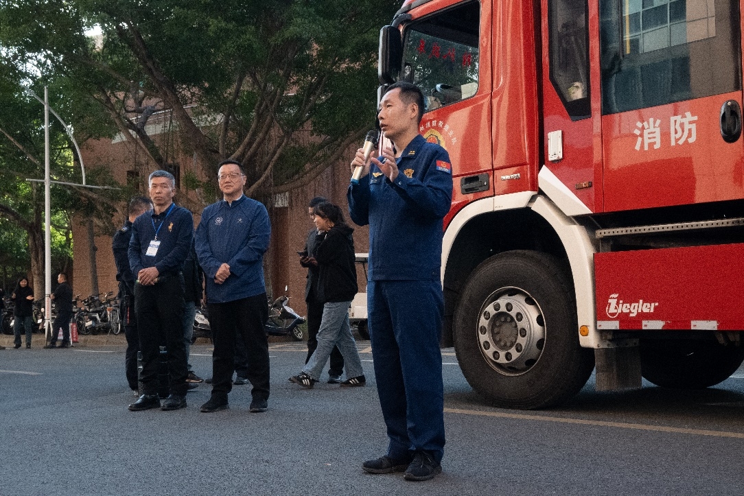首先,保卫处副处长陈欣然致辞。他指出,学校对消防安全工作高度重视,3044永利集团作为消防安全重点单位,积极组织开展实验室安全管理、演练培训工作,可以帮助师生提高安全意识、掌握防范与应对消防事故技能,保障化学材料综合楼的消防安全和学院教学科研工作的安全有序运行。