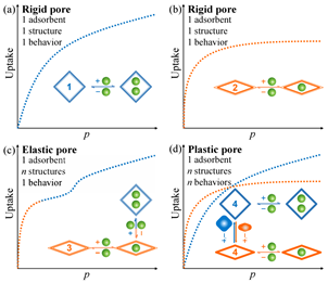 图2 刚性/柔性孔的吸附和结构转变行为。