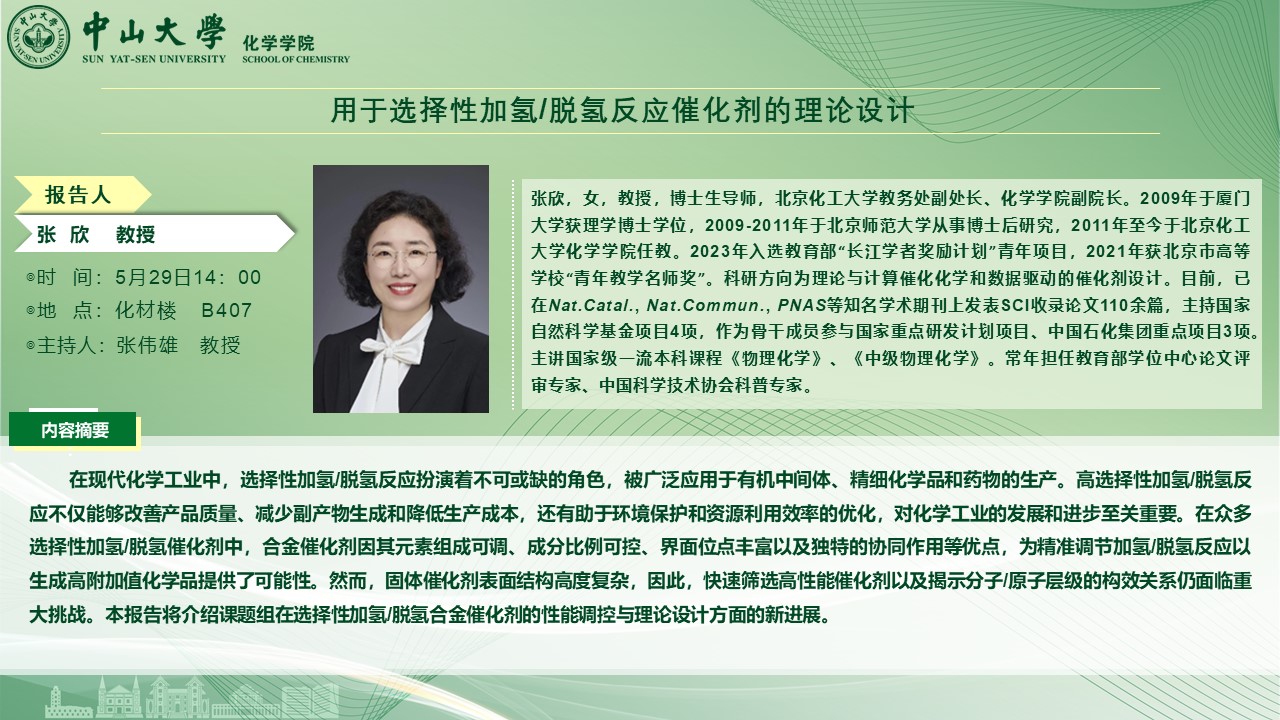 导航痕迹 首页 科学研究 学术报告 2025年5月29日讲座论坛:用于选择性加氢/脱氢反应催化剂的理论设计 2025年5月29日讲座论坛:用于选择性加氢/脱氢反应催化剂的理论设计 发布日期:2025-05-28